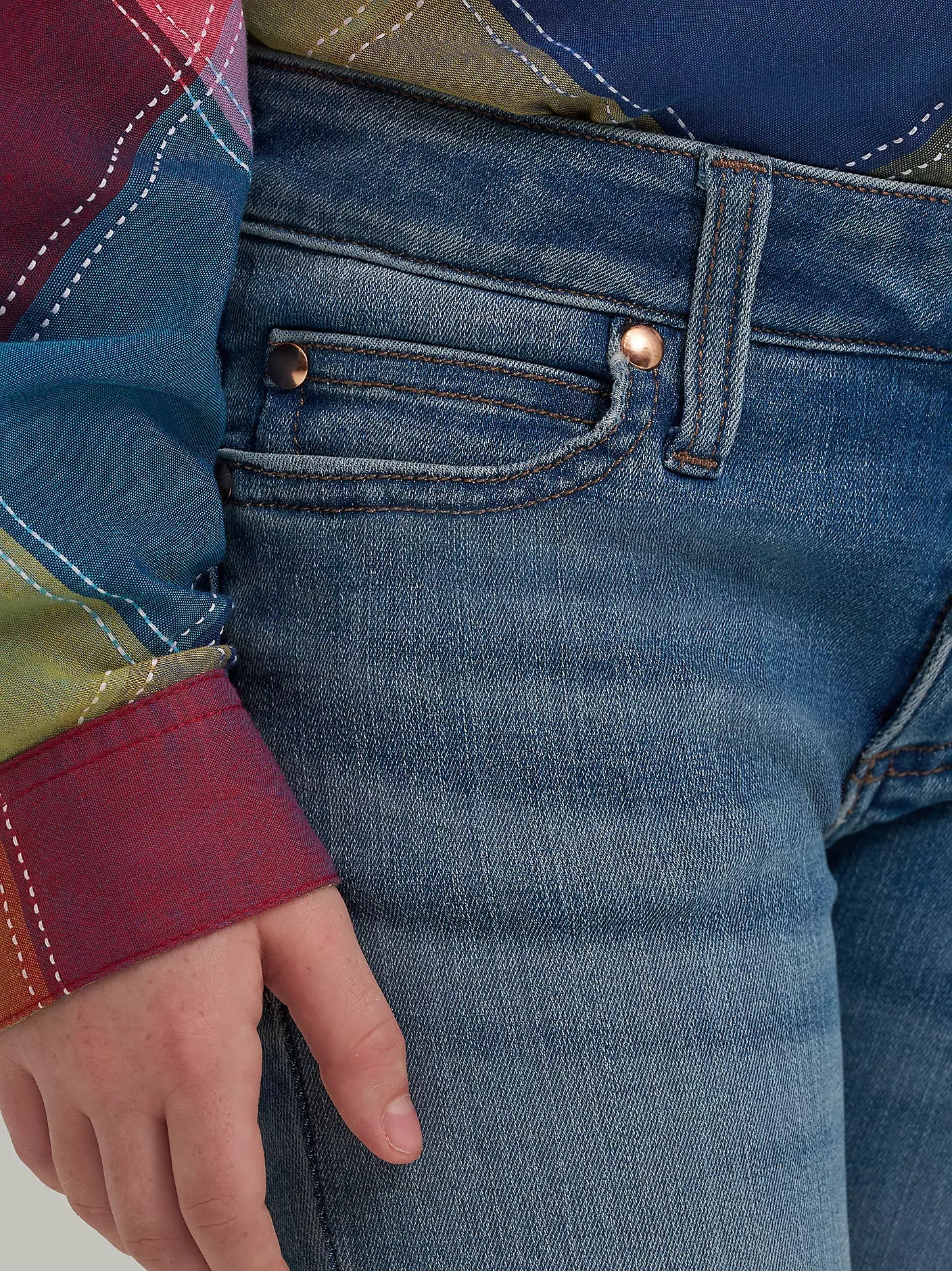 Lainey’s always loved her Wranglers. And it turns out, the feeling’s mutual. This high-rise jean is inspired by our 11MPZ Bailey Bootcut but with a slimmed-down knee and leg to let your boots share the spotlight. The Girl's Wrangler® x Lainey Wilson Boot Huggers come with all the classic details, including our five-pocket styling, the ‘W’ stitching, a logo patch, and copper hardware. You’ll also find Lainey’s “LW” initials embroidered on the coin pocket, her full signature on the waistband, and the print of a special handwritten message on the inner pocket bag, showing just how hands-on she was in the creation of each collection piece, including this one.
