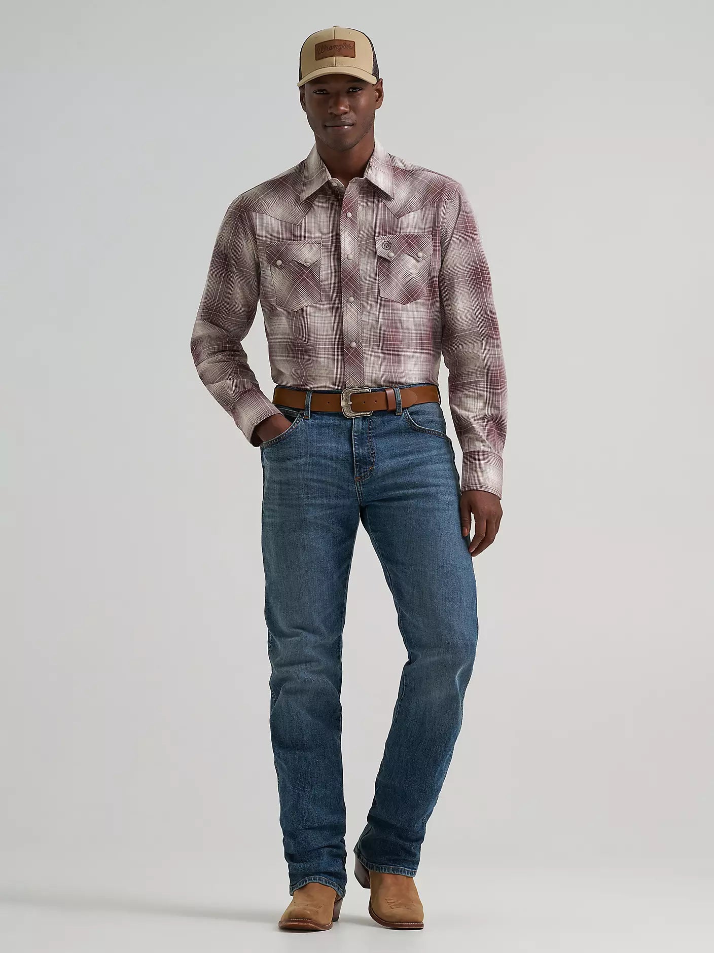 This shirt comes with all the same details you love, including a spread collar, pointed yokes, and two sawtooth snap flap pockets with embroidery to add a bold element to every outfit. Plus, it features a modern fit and it's crafted from cotton for comfort and long-lasting durability, no matter how often you wear it. Wear it with a pair of Wrangler Retro bootcut jeans to complete the look for any occasion.