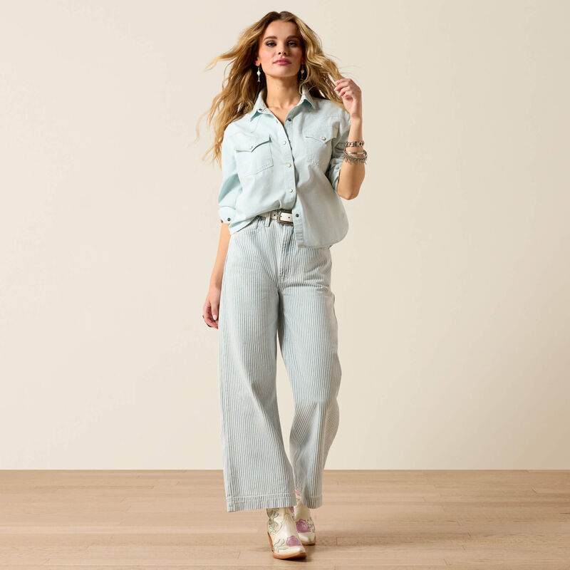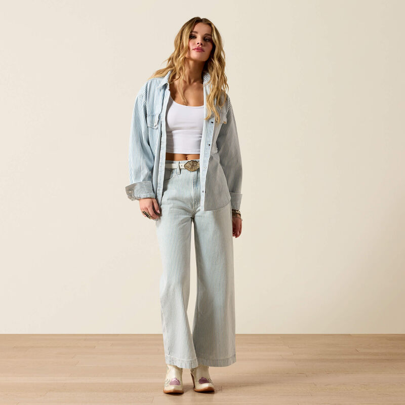 Cropped and striped with a bold vintage feel, this wide leg makes a statement. Perfect with the matching Denim Shirt Jacket or styled solo, it’s an effortlessly cool option for concerts and festivals.