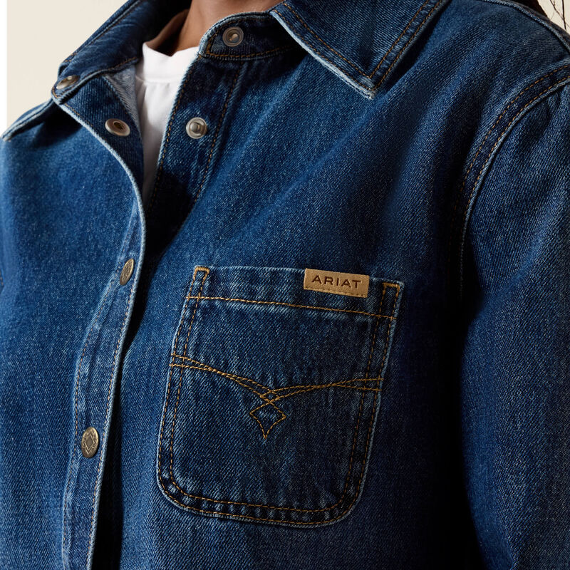 Soft, drapey denim gives this cropped top a relaxed feel. Snap it closed to wear as a shirt or leave it open as a lightweight layer. Great for a festival ‘fit, it matches our Calamity Comfort Wide Leg Jeans for a head-to-toe denim look.