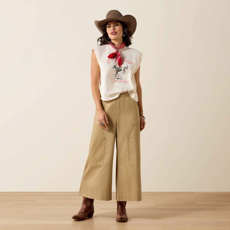Screen-printed with Western graphics, this cropped tee stands out with its unique back yoke. A curved hem and muscle-style cut add a tough-but-feminine edge.