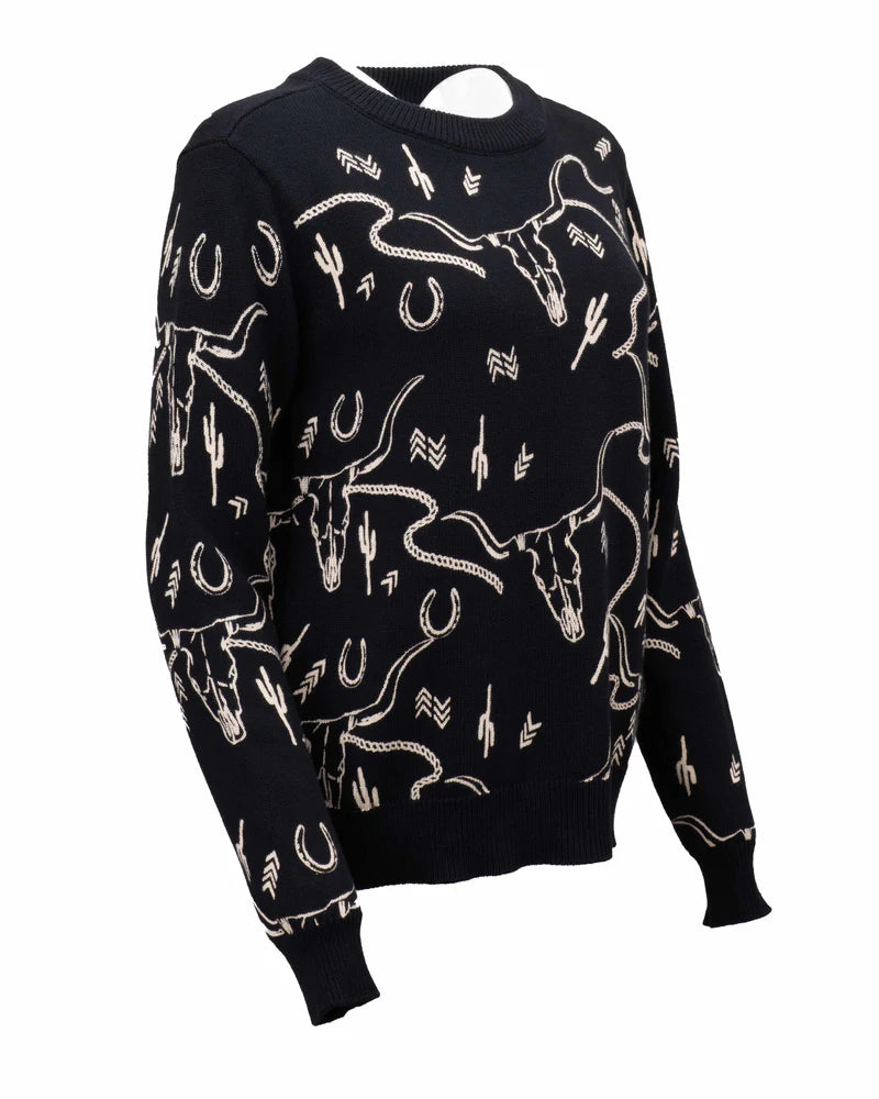 The Ainsley Sweater is a western-inspired classic, knit from 100% cotton for natural comfort and breathability.  With its bold patterned design, it’s a cozy layer that brings rugged charm to cool days.